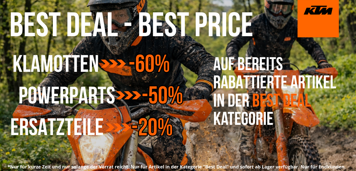 Du teilst unsere Meinung, dass Motorradfahren das schönste Hobby der Welt ist? Noch dazu bist Du ein großer Fan von KTM? Dann bist Du im KTM-Powershop genau richtig: Seit vielen Jahren verkaufen wir über unseren KTM Onlineshop originale KTM Ersatzteile, KTM Powerparts, KTM Powerwear sowie KTM Zubehör für ambitionierte Biker mit der Leidenschaft für Motorsport. Fühle Dich hier ganz wie zu Hause!
