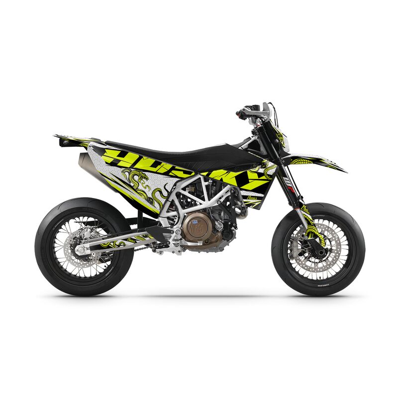 Mit dem Husqvarna 701 Dekor - Mamba Edition kannst du deinem Motorrad einen besonderen Touch verleihen. Willst du dich von der Masse abheben? Willst du deine Motorradkollegen beeindrucken? Dann ist Arider der richtige Ort für dich. Unser hochwertigen Dekor Kits für die Husqvarna 701 Dekor stehen für: lange Lebensdauer, Passgenauigkeit, außergewöhnliche Designs und maximaler Schutz für deine Verkleidung. Haben Sie Angst vor dem Aufkleben? Keine Sorge. Wir verwenden eine spezielle Folie mit Luftkanälen für eine blasenfreie Verklebung - worauf warten Sie noch?