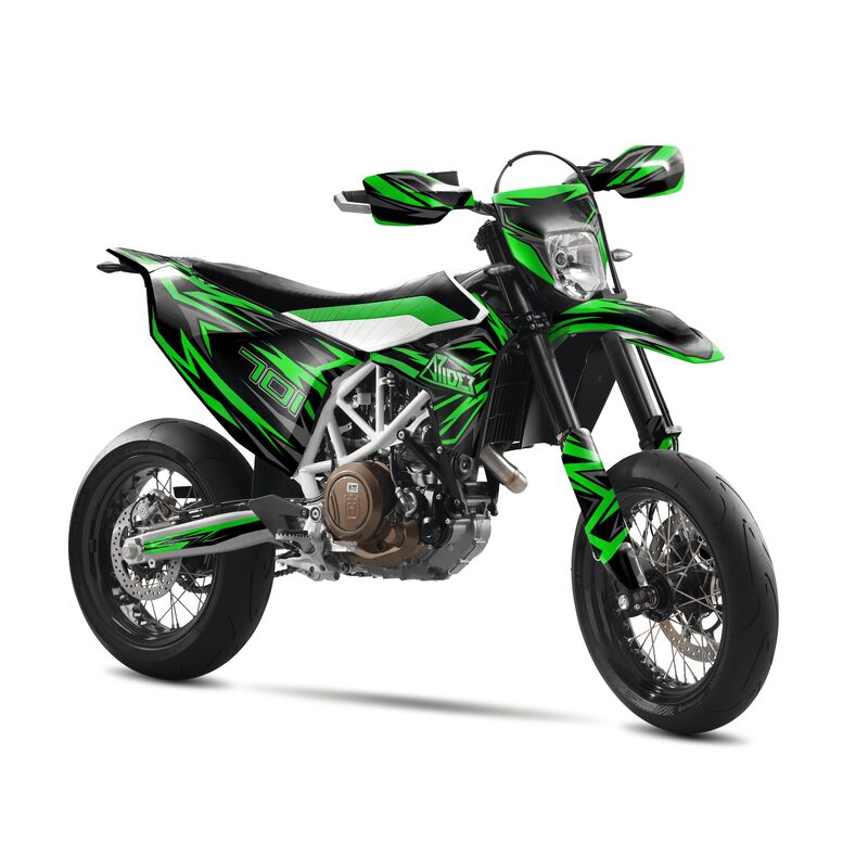 Mit dem Husqvarna 701 Dekor - Spark Edition kannst du deinem Motorrad einen besonderen Touch verleihen. Willst du dich von der Masse abheben? Willst du deine Motorradkollegen beeindrucken? Dann ist Arider der richtige Ort für dich. Unser hochwertigen Dekor Kits für die Husqvarna 701 stehen für: lange Lebensdauer, Passgenauigkeit, außergewöhnliche Designs und maximaler Schutz für deine Verkleidung. Haben Sie Angst vor dem Aufkleben? Keine Sorge. Wir verwenden eine spezielle Folie mit Luftkanälen für eine blasenfreie Verklebung - worauf warten Sie noch?
