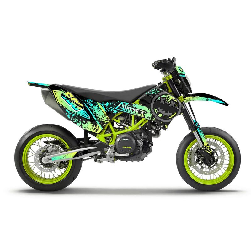 Mit dem KTM 690 SMC-R Dekor - Smiley Edition kannst du deinem Motorrad einen besonderen Touch verleihen. Willst du dich von der Masse abheben? Willst du deine Motorradkollegen beeindrucken? Dann ist Arider der richtige Ort für dich. Unser hochwertigen Dekor Kits für die KTM 690 SMC-R Dekor stehen für: lange Lebensdauer, Passgenauigkeit, außergewöhnliche Designs und maximaler Schutz für deine Verkleidung. Haben Sie Angst vor dem Aufkleben? Keine Sorge. Wir verwenden eine spezielle Folie mit Luftkanälen für eine blasenfreie Verklebung - worauf warten Sie noch?