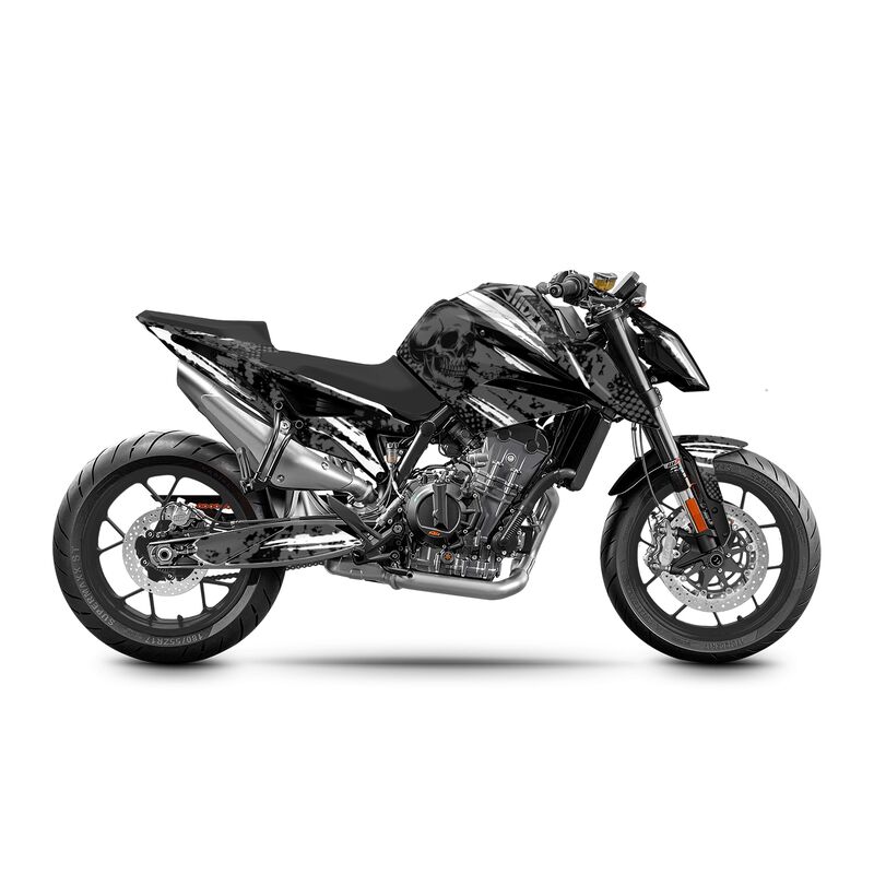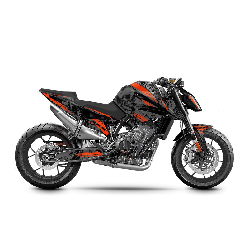 Mit dem KTM Duke 890 R Dekor - Skull Edition kannst du deinem Motorrad einen besonderen Touch verleihen. Willst du dich von der Masse abheben? Willst du deine Motorradkollegen beeindrucken? Dann ist Arider der richtige Ort für dich. Unser hochwertigen Dekor Kits für die KTM Duke 890 R stehen für: lange Lebensdauer, Passgenauigkeit, außergewöhnliche Designs und maximaler Schutz für deine Verkleidung. Haben Sie Angst vor dem Aufkleben? Keine Sorge. Wir verwenden eine spezielle Folie mit Luftkanälen für eine blasenfreie Verklebung - worauf warten Sie noch?