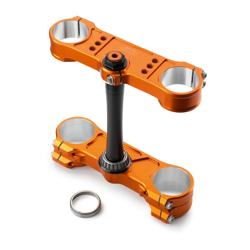 - Nach dem Eloxieren gespindelte Gabelklemmung, um ein Verdrehen der Gabelrohre in der Gabelbrücke weitgehend zu verhindern