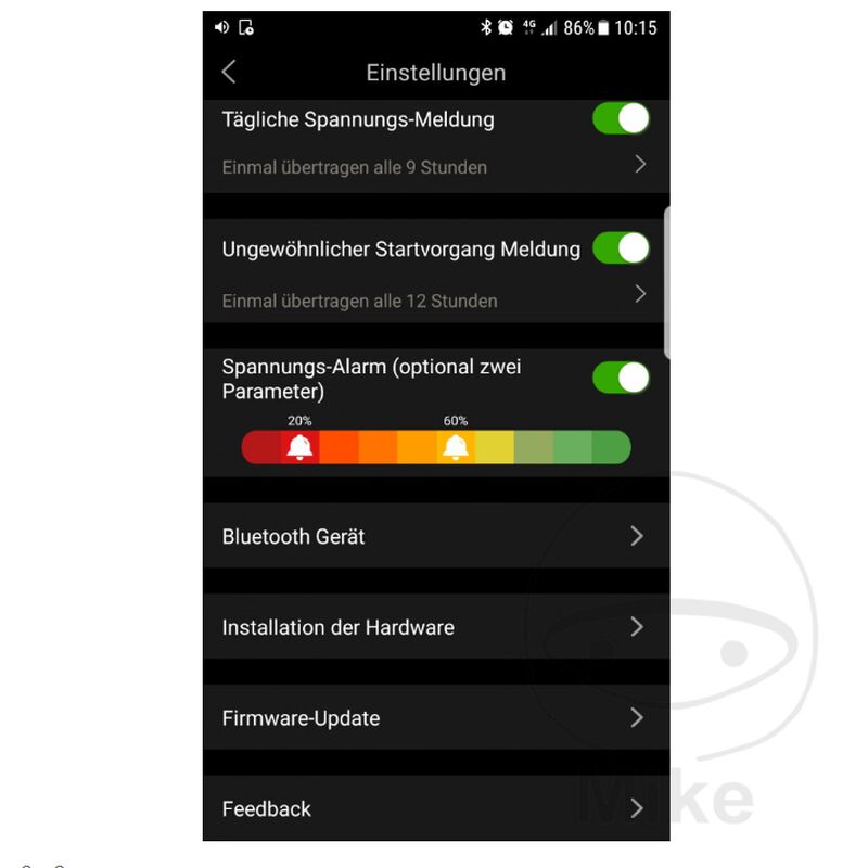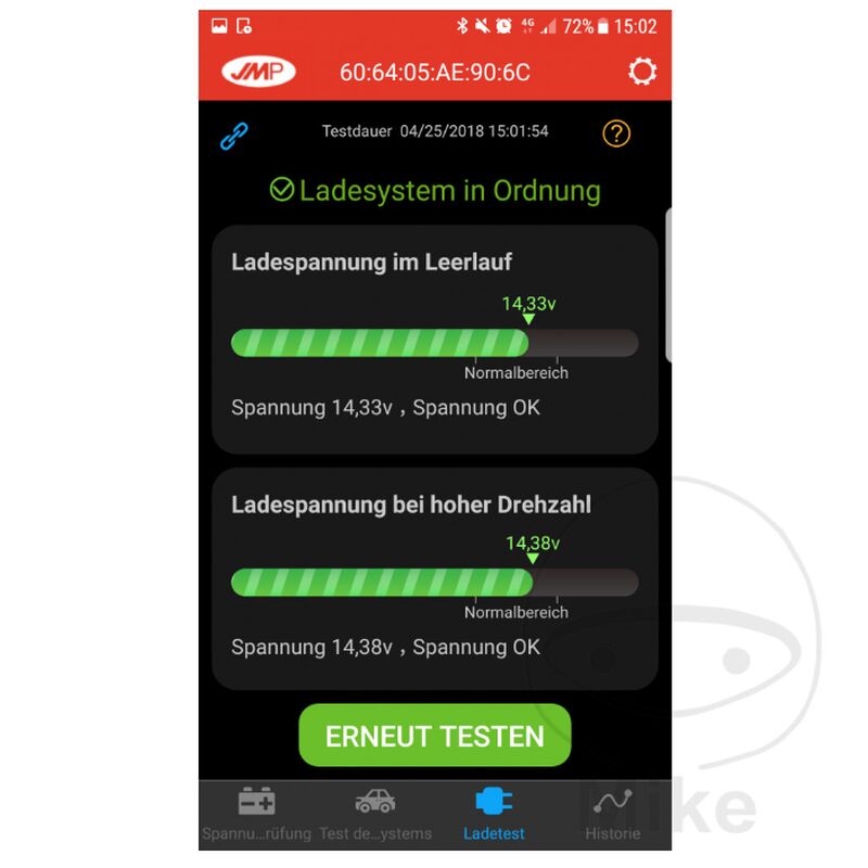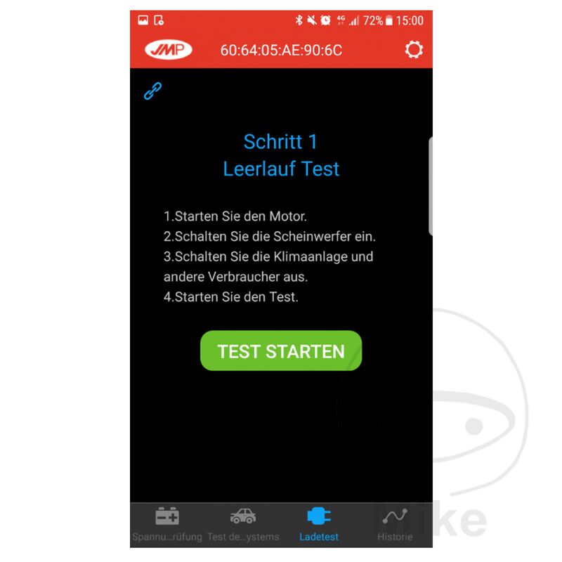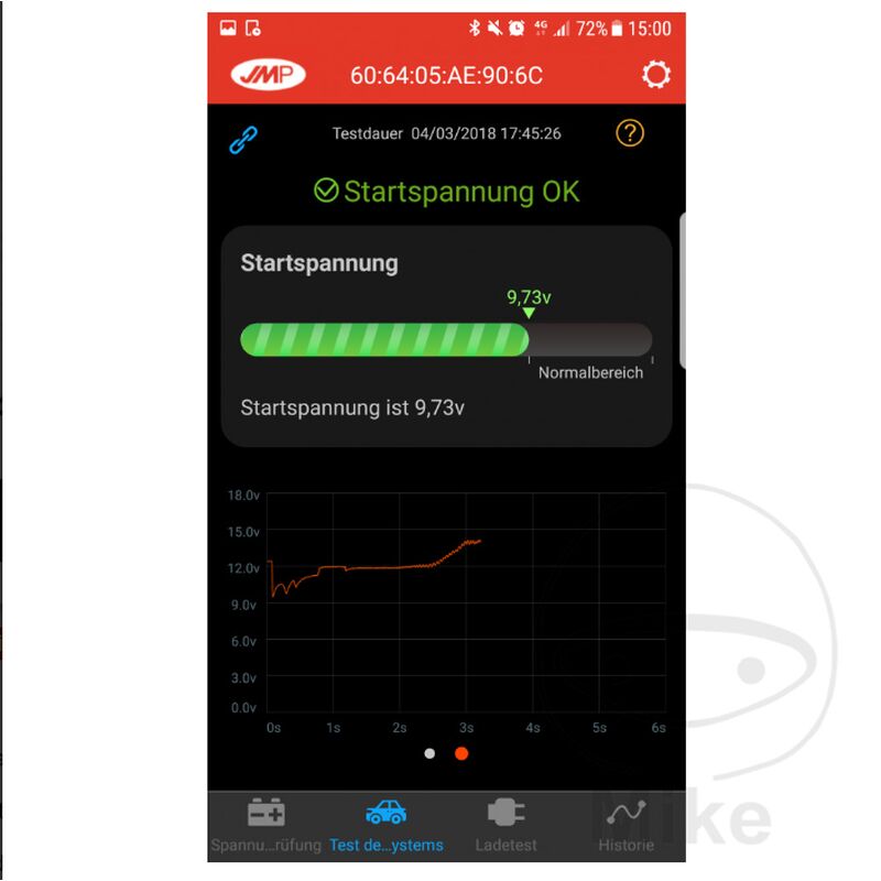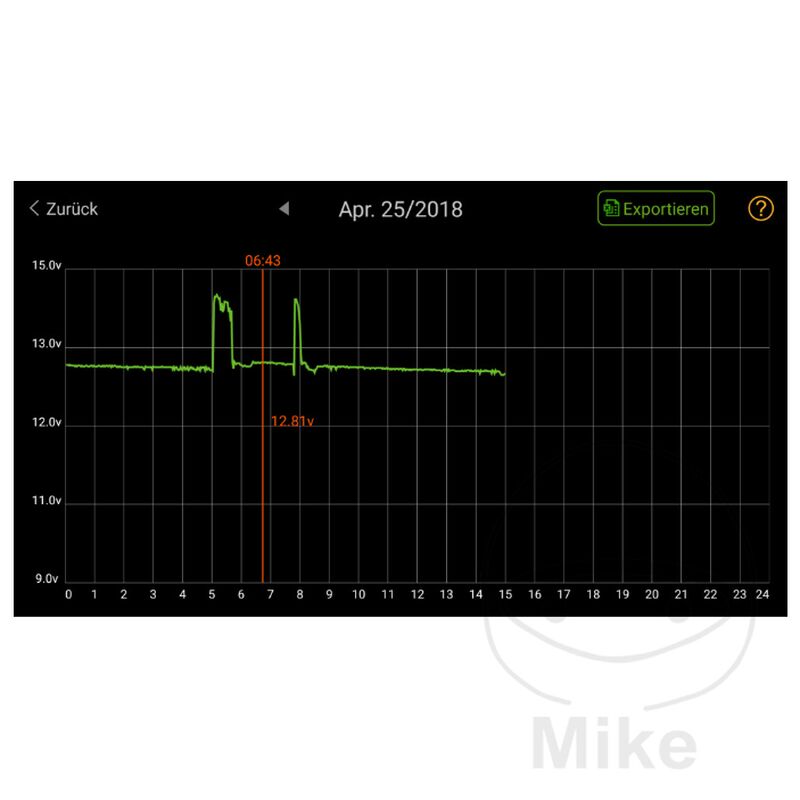 JMP Skan Monitor 2 Batterieüberwachung mit dem Smartphone „Nicht für Lithiumbatterien geeignet.“ Mit dem JMP Skan Monitor 2 und der neuen und kostenfreien Apple- oder Android-App „ JMP BatteryMonitor II“ sind Sie in der Lage, den Ladezustand Ihrer Batterie schnell und einfach zu kontrollieren. Nur bei einem beständigen, positiven Ladezustand der Batterie ist auch die volle Kapazität und Nutzbarkeit gewährleistet. Der positive Ladezustand verhindert zudem eine eventuelle frühzeitige Schädigung bzw. einen Ausfall der Batterie. Durch die kontinuierliche Aufzeichnung wird der Ladezustand der Batterie während Fahrten erfasst und lässt sich auch später noch aufrufen. Die Datei mit den Daten lässt sich per Email vom Smartphone versenden und in Excel anzeigen. So kann man schnell erkennen wo die Ladespannung eingebrochen ist oder zu hoch war. Darüber ist ein defekter Regler schnell zu erkennen. Außerdem können mit der neuen App auch Startvorgänge (Anlasser, Kabelverbindungen, usw.) und Ladevorgänge (Lichtmaschine, Kabel, usw.) genau überprüft werden. Das erspart im Problemfall lange Fehlersuchen. Bei niedrigem Batteriestand oder anderen Problemen kann je nach Einstellung in den App-Optionen eine Benachrichtigung den Fahrer warnen. Nach dem einfachen Anschluss mittels Gabelösen an der Batterie und dem Herunterladen der neuen Android- oder Apple-App, kann der aktuelle Spannungswert abgerufen werden. Der Sender ist für 12 V Batterien verwendbar. Die Reichweite liegt bei ca. 10 Metern. Die Verbindung erfolgt per Bluetooth. (Erst ab Bluetooth 4.0; z.B. ab iPhone 4s, iPad3 oder iPod Touch 5) Der JMP Skan Monitor 2 eignet sich hervorragend um etwa Überspannung > 14,9 V der Lichtmaschine zu erkennen, ehe es zu Beschädigungen an der Batterie kommt. Bitte beachten Sie: Für den neuen JMP Skan Monitor 2 wird die neue App JMP BatteryMonitor II“ benötigt Bei Unterschreitung der Mindestspannung wird auf ein baldiges Nachladen der Batterie hingewiesen. - Einfache Befestigung durch Gabelösen an der Batterie - Stromverbrauch nur ca. 2 mA - Bei Verpolung entsteht kein Schaden am Sender oder der Batterie - Kostenfreie App im Apple App Store oder im Google Play Store unter JMP Battery Monitor II herunterladen - Spannungsaufzeichnung auch während der Fahrt. Ergebnis per Email verschickbar. Anzeige der Datei in Excel möglich.