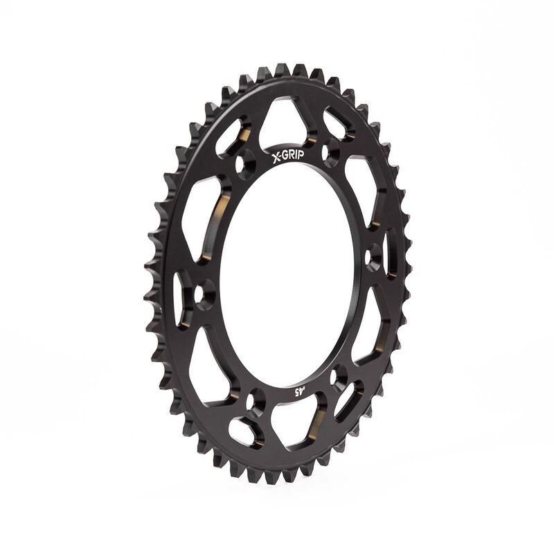 X-GRIP Aluminium Zahnkränze wurden speziell für die härtesten Einsatzbedingungen im Motocross, Enduro und Hardenduro entwickelt. Im Vergleich zu herkömmlichen Stahlkettenrädern bringt ein X-GRIP Aluminium Kettenrad eine Gewichtsersparnis von über 60%. Die Verwendung von hochwertigem Aluminium (7075 T6), sowie die extrem geringen Fertigungstoleranzen sorgen für eine außerordentlich lange Lebensdauer. - Über 60% leichter als ein herkömmliches Stahl Kettenrad - Auf Präzision-CNC Maschinen gefertigt - Plan und Rundlauftoleranzen von unter 0,1mm Aus EN AW 7075 T6 - eloxierte Oberfläche - 100% Made in Germany